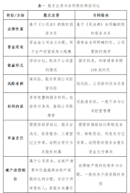 实务中难以准确区分股东垫资的法律属性,然而股东出资与合同债权作为不同权利形式,事实上存在诸多差异16,详见下表。